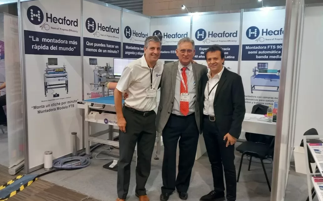 Im nebenstehenden Bild sehen Sie rechts Juan Carlos Ocampo, den Eigentümer, zusammen mit unserem Agenten Fernando Garcia von Excel Print SA de CV und Nick Vindel, International Sales Manager, Heaford, an unserem Ausstellungsstand während der Label Expo Mexico.